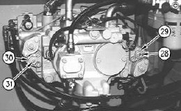 2. 轉(zhuǎn)動調(diào)整螺釘 (31) 以便調(diào)整最大輸出流量。順時針轉(zhuǎn)動調(diào)整螺釘 (31) 將減小泵的最