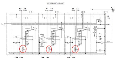 下圖中的梭閥就是用來(lái)比較每一聯(lián)的輸出流量和壓力,然后再通過(guò)LS口反饋到柱塞泵。